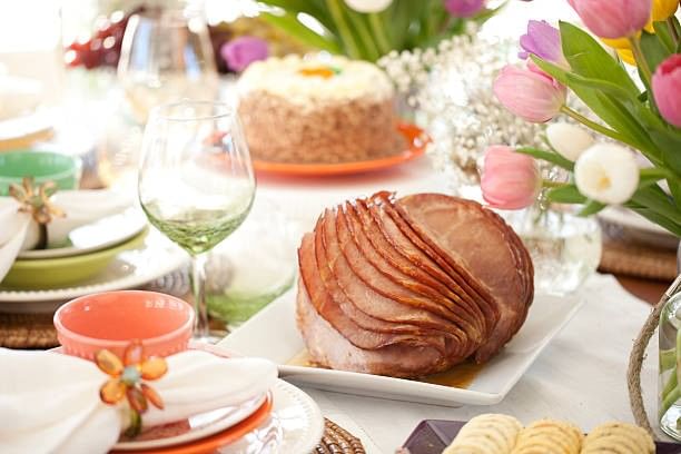 - Carving station featuring honey-glazed ham